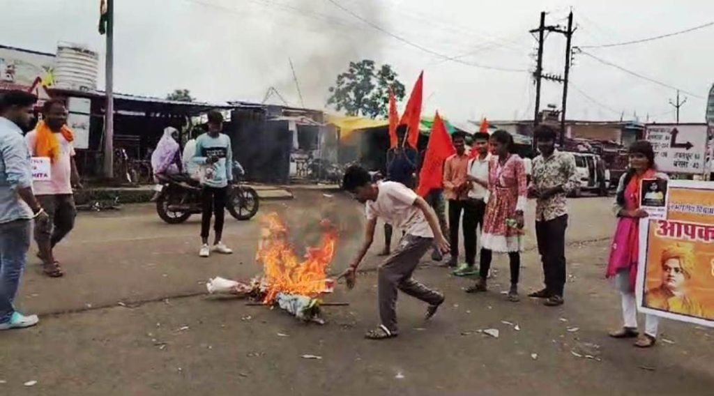 मंडला – पश्चिम बंगाल की राजधानी कोलकाता के आरजी कर मेडिकल कॉलेज में जूनियर डॉक्टर की दुष्कर्म के बाद हत्या की घटना सामने आई है। पश्चिम बंगाल में गत अनेकों माह से महिला सुरक्षा से संबंधित घटनाएं हो रही है। ऐसे दुष्कर्मों में संलिप्त लोगों को बचाने का प्रयास पश्चिम बंगाल की ममता सरकार कर रही है। बंगाल में हो रही घटनाएं मानवता को शर्मसार करने वाली है। इन घटनाओं को ध्यान में रखते हुए ममता सरकार के विरोध में अखिल भारतीय विद्यार्थी परिषद द्वारा पूरे प्रदेश में विरोध प्रदर्शन किया गया। महाकौशल प्रांत जिला मंडला की इकाई निवास में निवास तिराहे पर पश्चिम बंगाल की मुख्यमंत्री ममता बनर्जी का पुतला दहन किया गया। इसके साथ ही राजा शंकर शाह कुंवर रघुनाथ शाह की प्रतिमाओं के सामने केंडल जलाकर श्रृद्धांजलि अर्पित की।